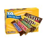 Dieses 30er-Mixpaket mit Schokoriegeln in voller Größe enthält SNICKERS, TWIX, M&M’S Peanut, M&M’S Milk Chocolate und MILKY WAY.