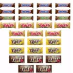 Inhalt: (8) SNICKERS, (7) TWIX, (6) M&M’S Peanut, (5) M&M’S Milk Chocolate, (4) MILKY WAY