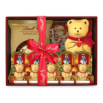 Der Lindt Teddy Geschenkkorb ist ein weihnachtliches Präsent, das mit erlesenen Lindt Köstlichkeiten verzaubert. Im Mittelpunkt steht der Lindt TEDDY, der in der Weihnachtszeit Klein und Groß begeistert. Zusammen mit ausgewählten Schokoladenspezialitäten entstehen feinste Genussmomente. Ideal, um Weihnachtsfreude zu verschenken.